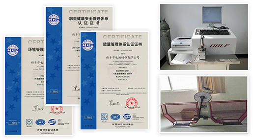 遵循國標(biāo)2級(jí)探傷標(biāo)準(zhǔn),執(zhí)行無損探傷檢測(cè)體系,有德國OBLF公司GS-1000型直讀光譜儀,碳硫分析儀,三元素分析儀,機(jī)械性能試驗(yàn)機(jī),沖擊試驗(yàn)低溫槽,沖擊試驗(yàn)機(jī),UT、MT探傷設(shè)備等。公司于2009年率先在同行業(yè)通過ISO9001:2008質(zhì)量管理體系認(rèn)證,并于2016年順利通過環(huán)境管理體系認(rèn)證、職業(yè)健康和安全管理體系認(rèn)證、安全生產(chǎn)標(biāo)準(zhǔn)化認(rèn)證。